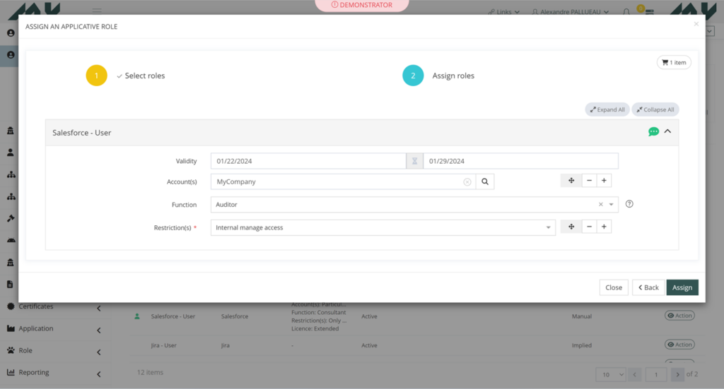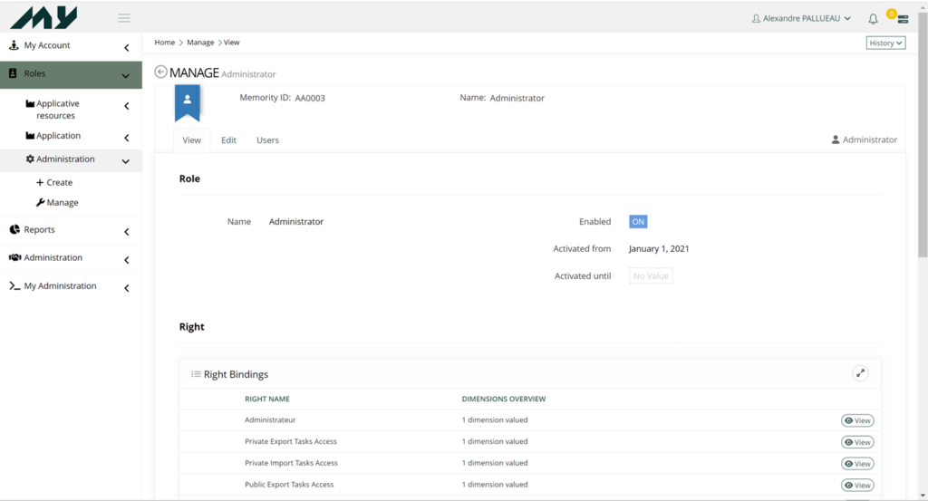Memority offers a powerful role model definition to manage delegated administration into Memority portal but also applications accesses, equipment and any other link between an identity and a resource.